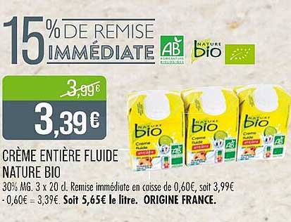 Offre de Crème Entière Fluide Nature Bio chez Match