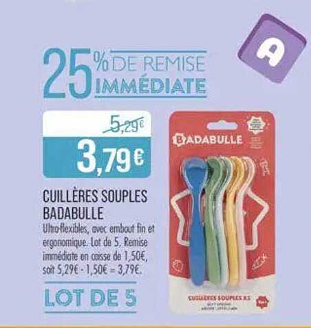 Découvrez l'offre de Cuillères Souples Badabulle chez Match! Cette offre fantastique est maintenant disponible dans le nouveau catalogue de Match. Profitez de cette occasion et économisez considérablement sur votre achat.