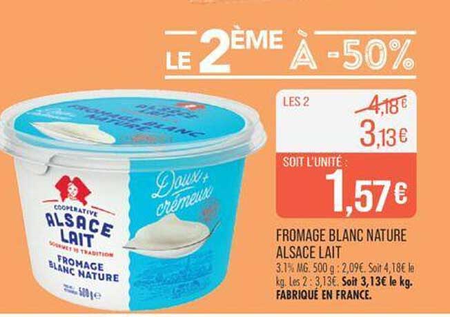 Offre de Fromage Blanc Nature Alsace Lait chez Match
