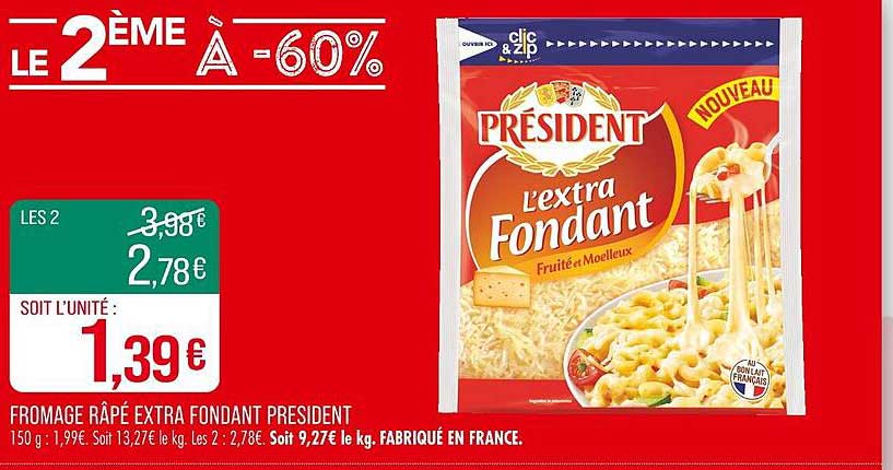 Offre de Fromage Râpé Extra Fondant Président chez Match