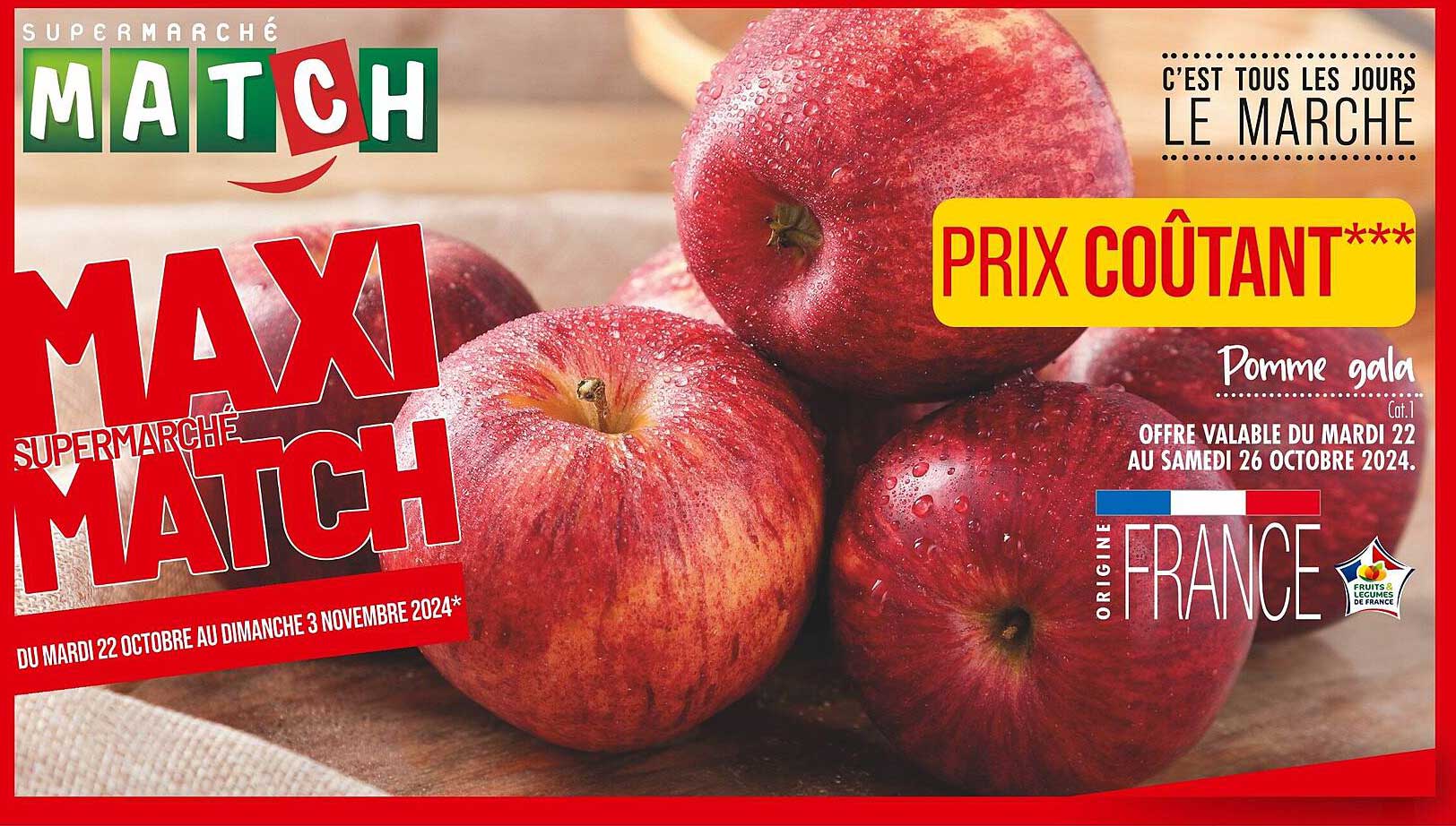 Offre de Maxi Supermarché Match Prix Coûtant Pomme Gala chez Match