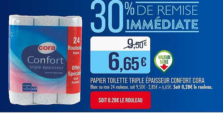 Découvrez la superbe offre de Papier Toilette Triple Épaisseur Confort Cora dans le nouveau catalogue de Match. En plus de cette offre, vous trouverez de nombreuses autres réductions attrayantes. Vous pouvez facilement commander le Papier Toilette Triple Épaisseur Confort Cora en ligne via le site web de Match ou l'acheter dans un magasin près de chez vous.