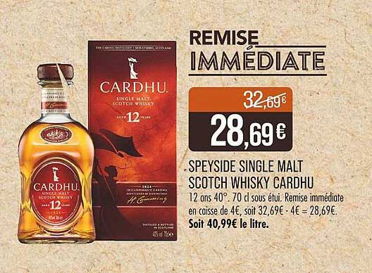 Vous êtes à la recherche d'un whisky de qualité pour vos moments de convivialité ? La promotion actuelle sur le Cardhu 12 ans, un scotch whisky single malt de la région de Speyside, est une occasion à ne pas manquer ! Avec ses notes fruitées et son arôme délicat, ce whisky saura ravir les papilles des amateurs comme des novices.