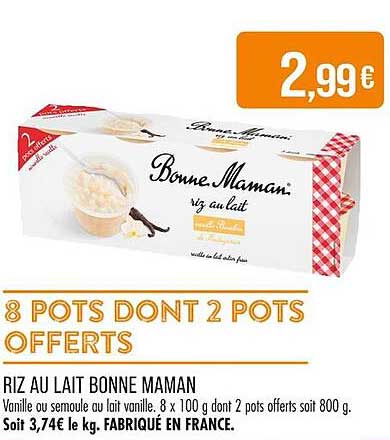 Découvrez le riz au lait Bonne Maman, une gourmandise intemporelle qui ravira les petits comme les grands ! Profitez de cette offre exclusive valable du 21 octobre au 2 novembre 2025, où vous pouvez acquérir 8 pots de ce délicieux dessert, dont 2 pots sont offerts ! Un vrai régal à partager en famille ou entre amis.