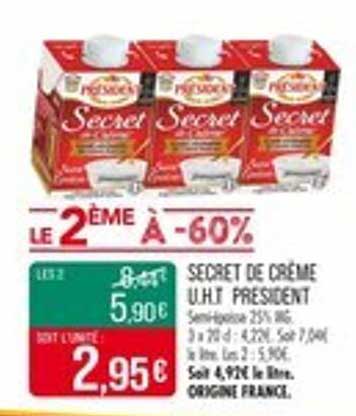 Découvrez l'offre de Secret De Crème U.h.t Président chez Match! Cette offre fantastique est maintenant disponible dans le nouveau catalogue de Match. Profitez de cette occasion et économisez considérablement sur votre achat.