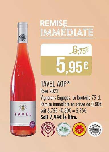 Découvrez dès maintenant la offre TAVEL AOP* dans le catalogue de Match. Cette offre est valable du 26/11/2024 au 08/12/2024.