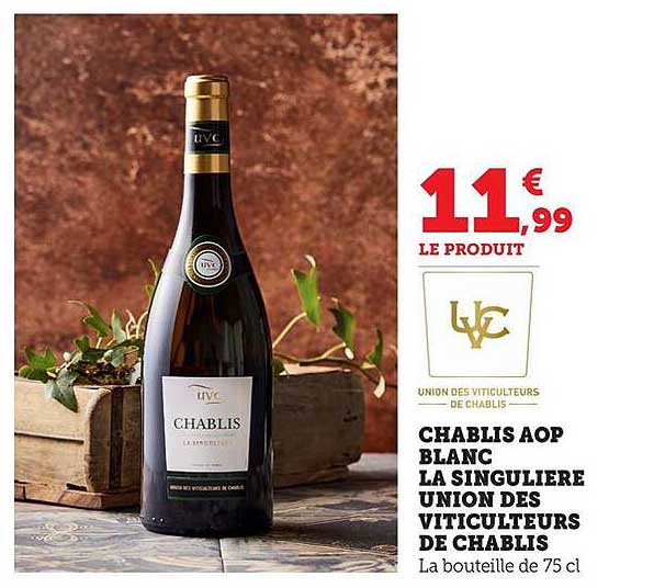 Découvrez dès maintenant la offre CHABLIS AOP BLANC - LA SINGULIERE UNION DES VITICULTEURS DE CHABLIS dans le catalogue de Maximarché. Cette offre est valable du 20/10/2025 au 26/10/2025.