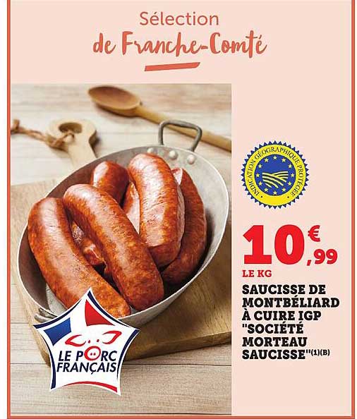 Découvrez une véritable spécialité du terroir avec la Saucisse de Montbéliard à cuire IGP de la Société Mortreau Saucisse. Au prix incroyable de 10,99 € le kg, cette saucisse incarne le savoir-faire exceptionnel de la charcuterie française, parfaite pour régaler vos invités lors de vos repas convivial.