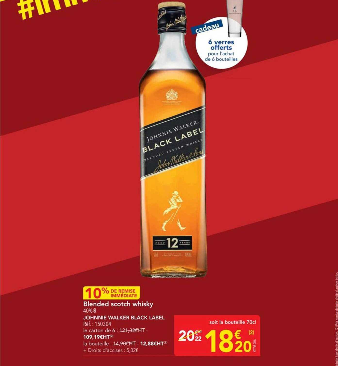 Si vous êtes amateur de whisky, vous serez ravi d'apprendre que METRO propose une offre spéciale sur le célèbre Johnnie Walker Black Label. Cette promotion est parfaite pour ceux qui cherchent à se faire plaisir ou à offrir un cadeau de qualité. Disponible du 30 octobre au 26 novembre 2025, cette offre vous permet de découvrir ou redécouvrir un whisky d’exception tout en bénéficiant d’une remise attractive.