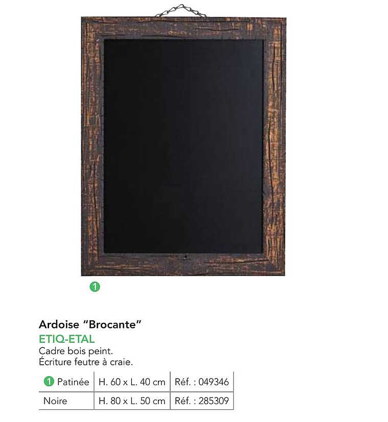 Découvrez dès maintenant la offre Ardoise "Brocante" dans le catalogue de METRO. Cette offre est valable du 01/01/2025 au 31/12/2026.