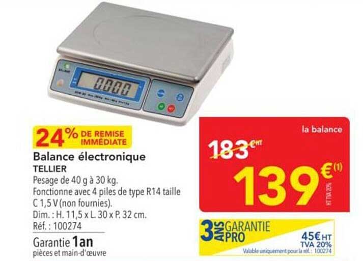 Découvrez dès maintenant la offre Balance électronique TELLIER dans le catalogue de METRO. Cette offre est valable du 02/10/2025 au 29/10/2025.