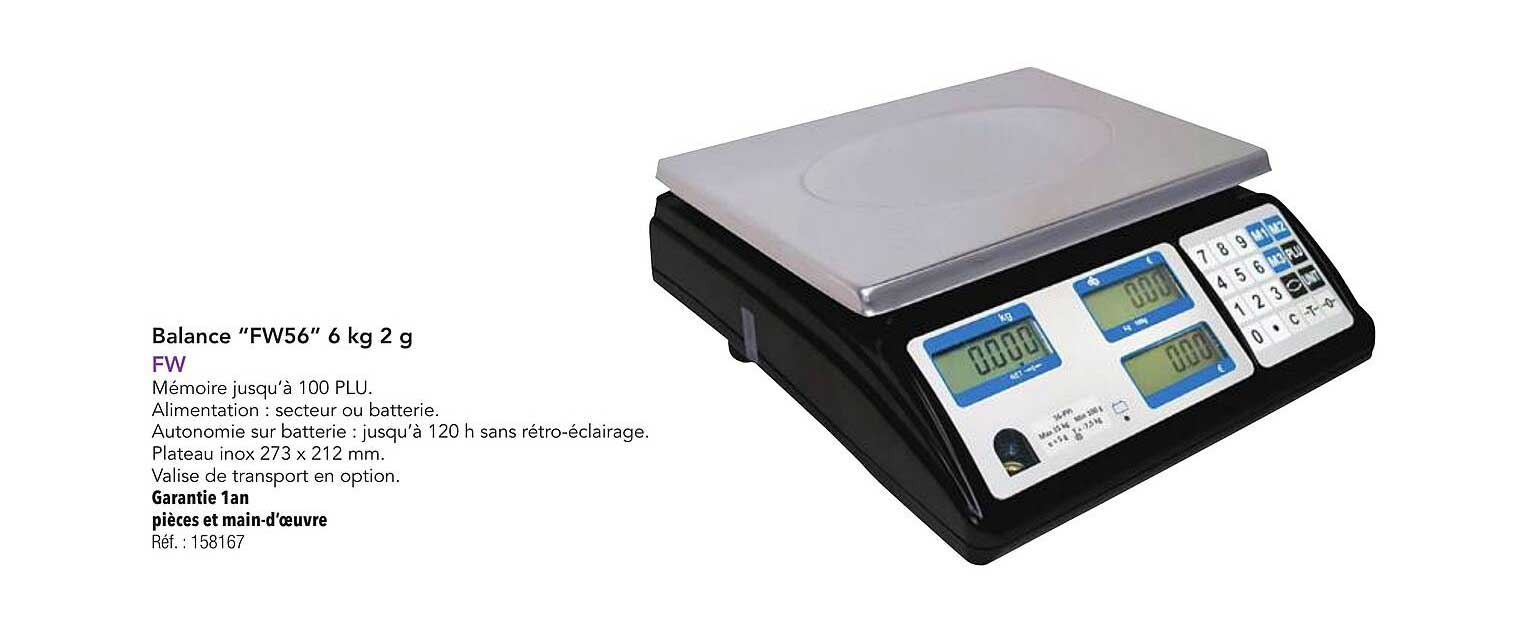 Cette offre est à considérer sérieusement, car elle vous permet de bénéficier d'une balance de haute qualité à un prix attractif. En comparaison avec d'autres modèles sur le marché, la balance FW56 se distingue par son rapport qualité-prix exceptionnel, vous permettant ainsi d'économiser tout en faisant le choix de la précision.