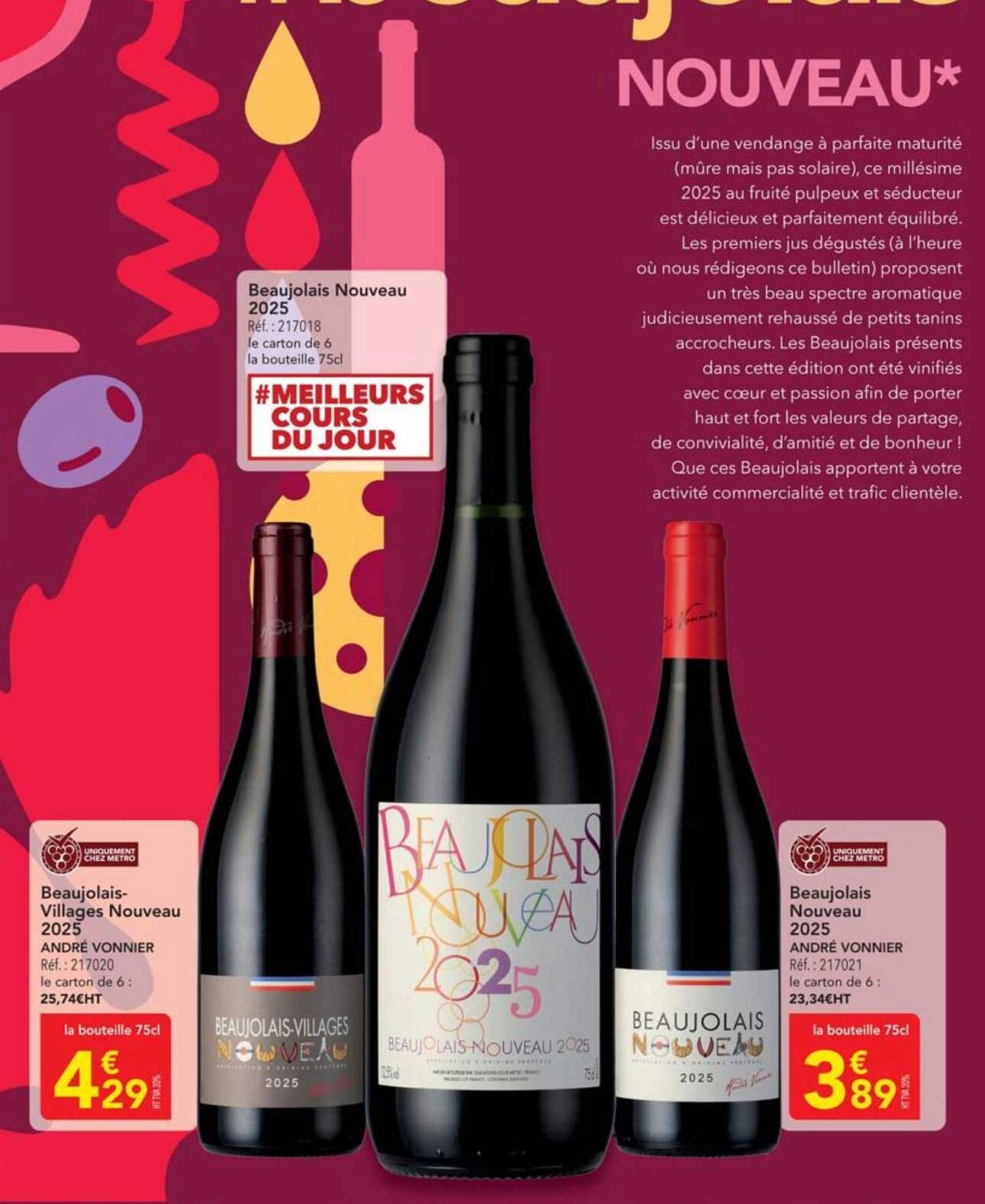 Découvrez dès maintenant la offre Beaujolais Nouveau 2025 dans le catalogue de METRO. Cette offre est valable du 30/10/2025 au 26/11/2025.