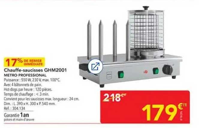 Découvrez le chauffe-saucisses GHM2001 de METRO, un indispensable pour tous les professionnels de la restauration ! Profitez d'une remise immédiate de 17 % sur cet appareil robuste, idéal pour servir vos clients avec efficacité. Disponible à partir du 30 octobre 2025 et jusqu'au 29 novembre 2025, cette offre est à ne pas manquer !