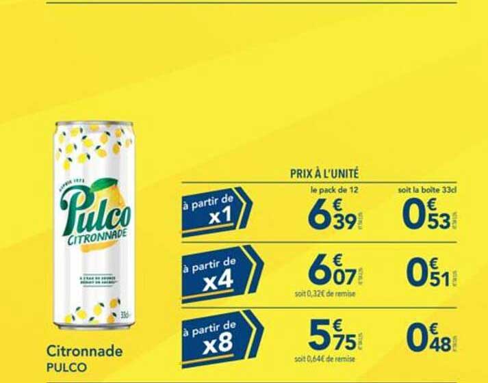 Découvrez l'irrésistible Citronnade PULCO, votre alliée parfaite pour les journées ensoleillées! Cette boisson rafraîchissante, à base de citron, apportera une délicieuse touche de fraîcheur à vos pauses ou vos repas. Profitez de cette offre incroyable disponible du 2025-10-02 au 2025-11-26.