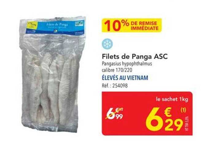 Découvrez les filets de Panga ASC, un produit de la mer incontournable à un prix défiant toute concurrence. Avec une remise immédiate de 10%, cette offre vous permet de savourer un poisson de qualité tout en réalisant des économies intéressantes. Elevés au Vietnam, ces filets sont parfaits pour vos repas en famille ou entre amis.