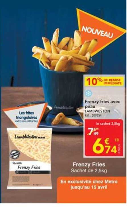 Découvrez dès maintenant la offre Frenzy fries avec peau dans le catalogue de METRO. Cette offre est valable du 27/03/2025 au 23/04/2025.