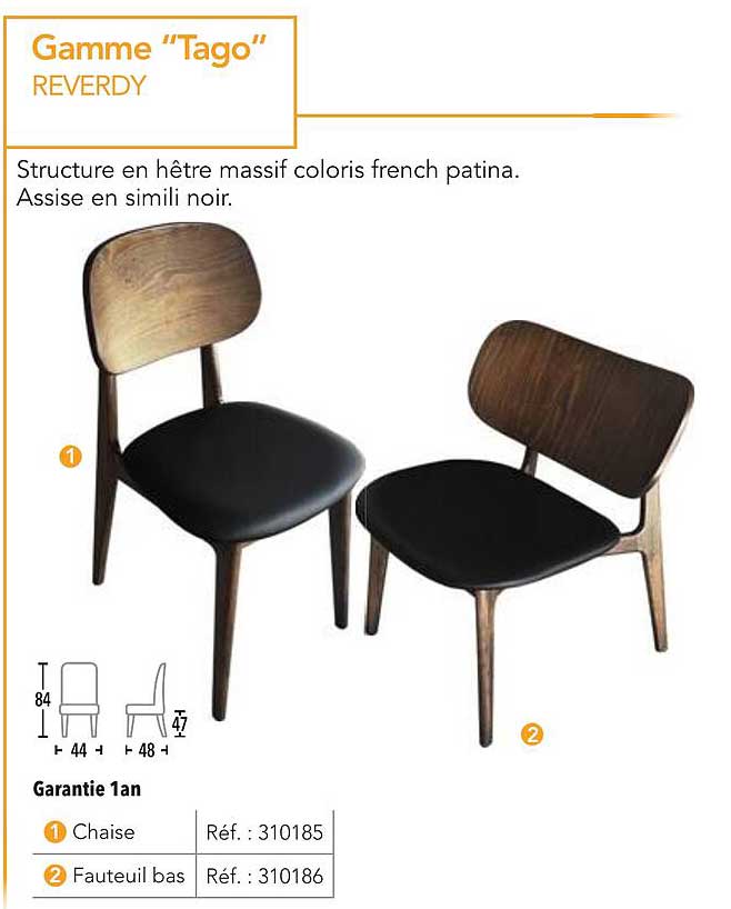Découvrez la gamme "Tago" de REVARDY, une collection de chaises et de fauteuils au design élégant et contemporain. Fabriqués avec une structure en hêtre massif, ces mobiliers allient robustesse et esthétisme. La finition coloris french patina leur confère un charme unique, parfait pour sublimer votre intérieur.