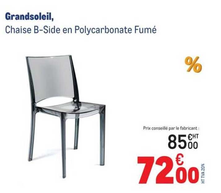 Découvrez dès maintenant la offre Grandsoleil, Chaise B-Side en Polycarbonate Fumé dans le catalogue de METRO. Cette offre est valable du 27/03/2025 au 23/04/2025.