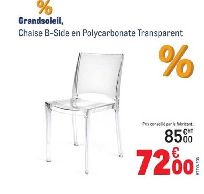 Découvrez dès maintenant la offre Grandsoleil, Chaise B-Side en Polycarbonate Transparent dans le catalogue de METRO. Cette offre est valable du 27/03/2025 au 23/04/2025.
