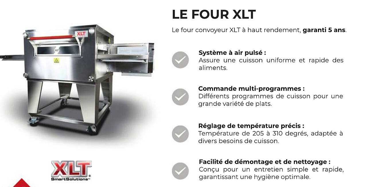 Découvrez le four convoyeur XLT, un appareil de cuisson à haut rendement qui vous promet une expérience culinaire inégalée. Que vous soyez dans un restaurant, une pizzeria ou un service de traiteur, cet appareil est conçu pour répondre à tous vos besoins de cuisson avec une efficacité exceptionnelle. Avec une garantie de 5 ans, c'est un investissement sûr pour votre cuisine.
