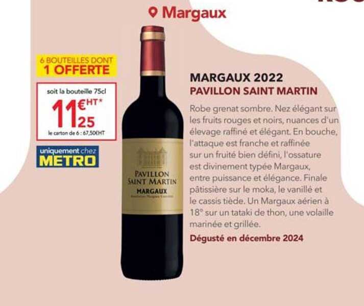 Découvrez dès maintenant la offre MARGAUX 2022 PAVILLON SAINT MARTIN dans le catalogue de METRO. Cette offre est valable du 02/10/2025 au 25/10/2025.