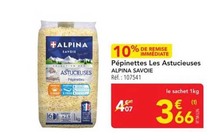 Découvrez une offre irrésistible sur les Pépinettes Les Astucieuses de la marque Alpina Savoie. Avec une remise immédiate de 10%, cette promotion est parfaite pour les amateurs de cuisine souhaitant ajouter une touche savoureuse à leurs plats. Disponible jusqu'au 30 septembre 2025, cette offre est optimale pour planifier vos repas.