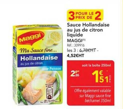 Découvrez la sauce hollandaise au jus de citron de Maggi, un incontournable pour sublimer vos plats. Profitez d'une promotion exceptionnelle en achetant 3 pots pour le prix de 2, valable du 2 au 15 octobre 2025. C'est l'occasion rêvée d'ajouter cette sauce délicieuse à votre cuisine, parfaite pour accompagner poissons et légumes.
