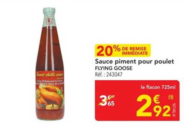 Découvrez dès maintenant la offre Sauce piment pour poulet FLYING GOOSE dans le catalogue de METRO. Cette offre est valable du 02/10/2025 au 29/10/2025.