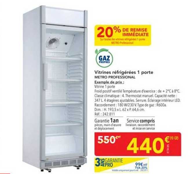 Découvrez l'offre incroyable sur les vitrines réfrigérées 1 porte METRO PROFESSIONAL, idéale pour les professionnels de la restauration et de la vente au détail. Cette vitrine, avec une température d'exercice variant de +2 °C à +8 °C, vous permettra de conserver vos produits frais tout en les mettant en valeur. De plus, vous bénéficiez d'une remise immédiate de 20 %, rendant cette offre vraiment irrésistible.