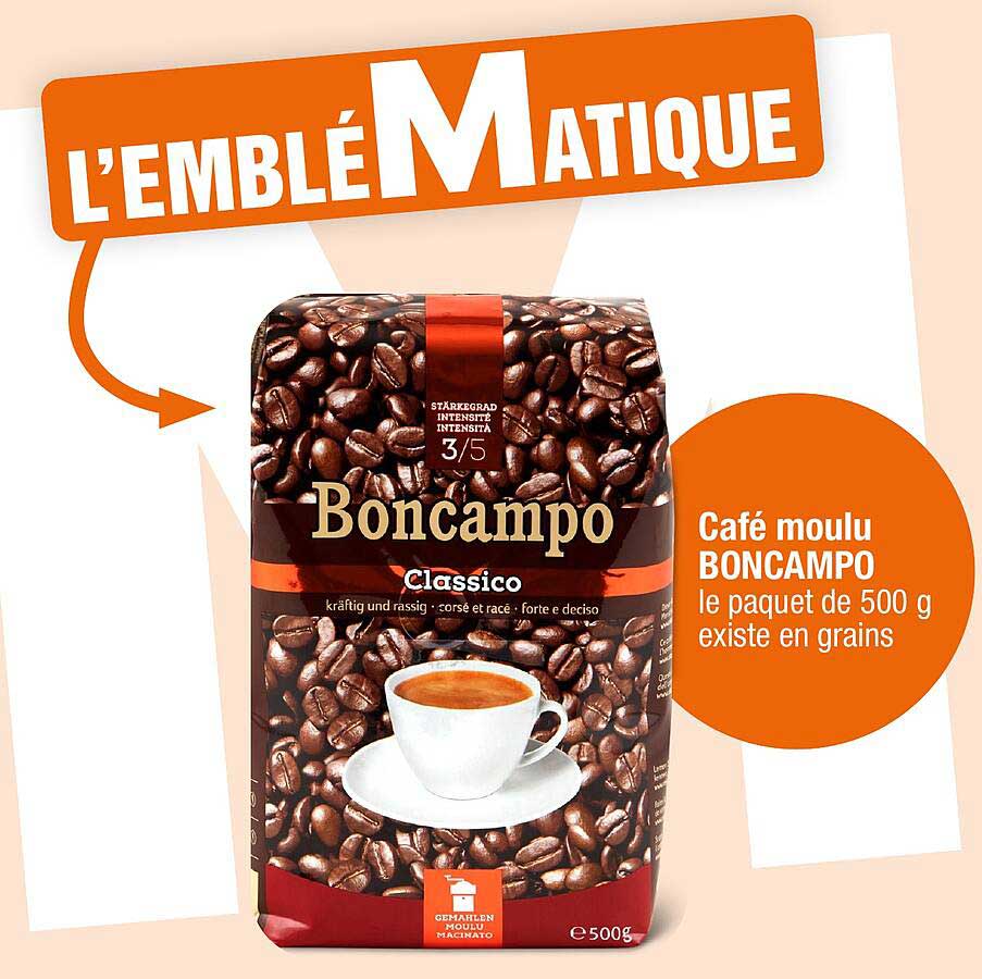 Découvrez l'offre de Café Moulu Boncampo chez Migros! Cette offre fantastique est maintenant disponible dans le nouveau catalogue de Migros. Profitez de cette occasion et économisez considérablement sur votre achat.