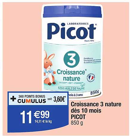 Découvrez l'offre de Croissance 3 Nature Dès 10 Mois Picot chez Migros! Cette offre fantastique est maintenant disponible dans le nouveau catalogue de Migros. Profitez de cette occasion et économisez considérablement sur votre achat.