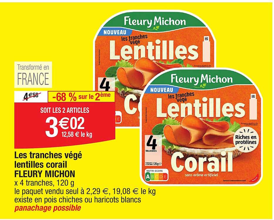 Découvrez l'offre de Les Tranches Végé Lentilles Corail Fleury Michon chez Migros! Cette offre fantastique est maintenant disponible dans le nouveau catalogue de Migros. Profitez de cette occasion et économisez considérablement sur votre achat.