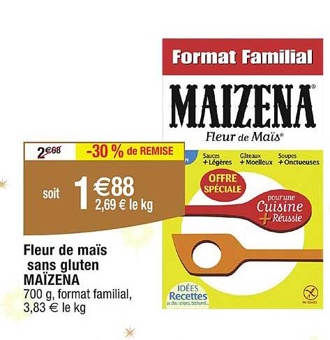 Vous voulez être informé immédiatement dès que le Maizena Fleur De Maïs est en promotion? Inscrivez-vous à notre alerte d'offres. Vous recevrez une notification dès que le produit sera disponible à un prix avantageux.