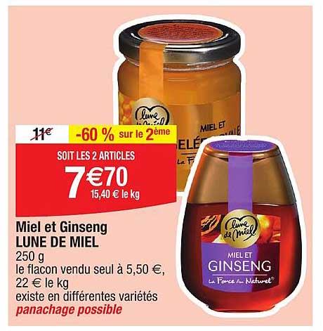 Découvrez l'offre de Miel Et Ginseng Lune De Miel chez Migros! Cette offre fantastique est maintenant disponible dans le nouveau catalogue de Migros. Profitez de cette occasion et économisez considérablement sur votre achat.
