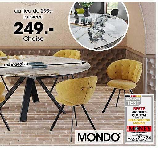 Découvrez notre superbe chaise Mondo, un ajout indispensable à votre intérieur ! En promotion jusqu'au 19 octobre 2025, elle se distingue par son style moderne et ses finitions soignées. Pour seulement 249 € au lieu de 299 €, vous bénéficiez d'une opportunité exceptionnelle d'embellir votre maison sans vous ruiner.