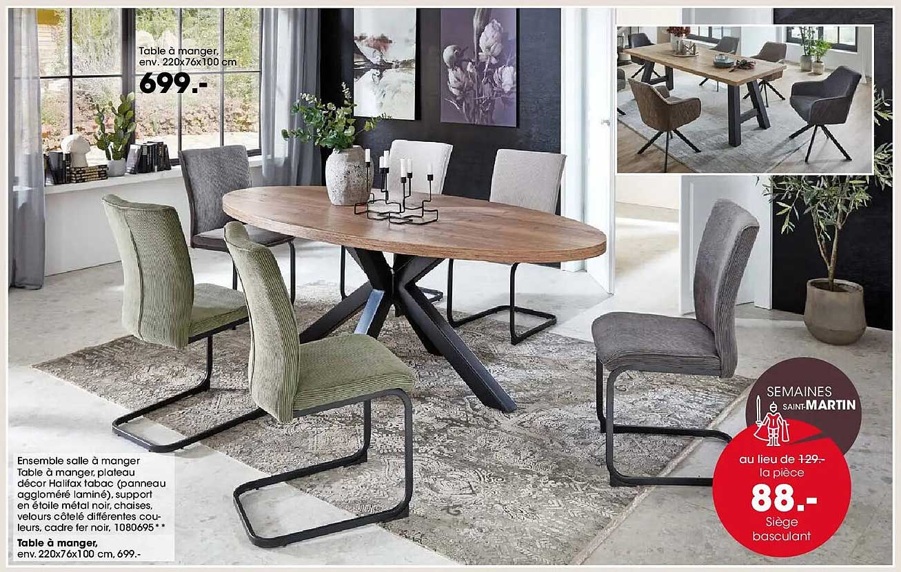 Découvrez dès maintenant la offre Table à manger, env. 220x76x100 cm dans le catalogue de Möbel Martin. Cette offre est valable du 02/11/2025 au 15/11/2025.