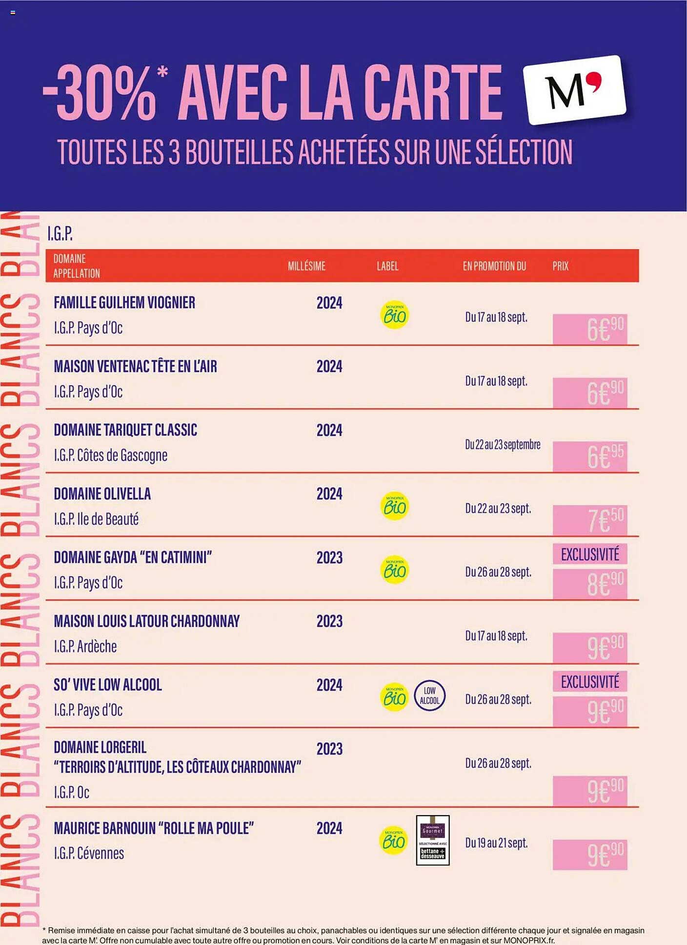 Découvrez dès maintenant la offre -30* AVEC LA CARTE M’ dans le catalogue de Monoprix. Cette offre est valable du 12/09/2025 au 28/09/2025.