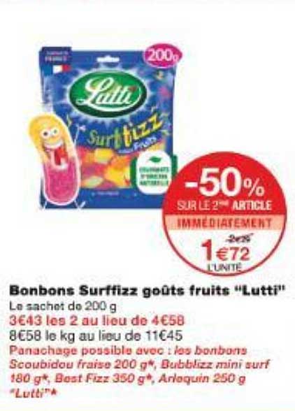 Offre de Bonbons Surffizz Goûts Fruits "Lutti" chez Monoprix