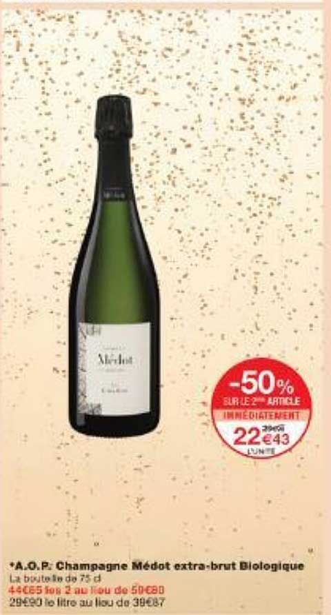 Offre de Champagne Médot Extra-Brut Biologique chez Monoprix