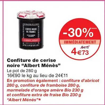 Découvrez dès maintenant la offre Confiture de cerise noire "Albert Méhès" dans le catalogue de Monoprix. Cette offre est valable du 21/10/2025 au 02/11/2025.