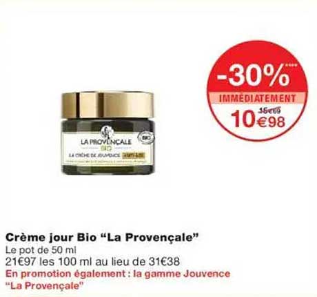Découvrez dès maintenant la offre Crème jour Bio “La Provençale” dans le catalogue de Monoprix. Cette offre est valable du 07/10/2025 au 19/10/2025.