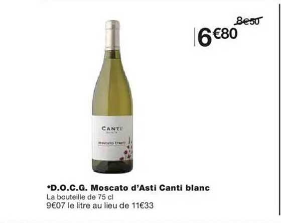 Découvrez dès maintenant la offre D.O.C.G. Moscato d'Asti Canti blanc dans le catalogue de Monoprix. Cette offre est valable du 04/10/2025 au 19/10/2025.