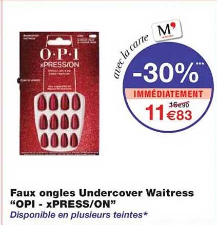 Découvrez dès maintenant la offre Faux ongles Undercover Waitress "OPI - xPRESS/ON" dans le catalogue de Monoprix. Cette offre est valable du 21/10/2025 au 02/11/2025.