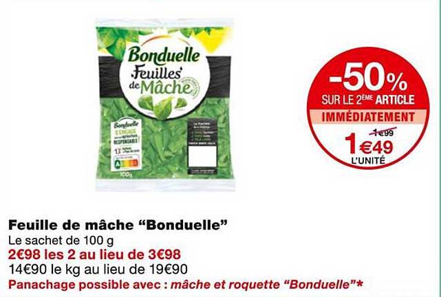 Découvrez l'offre de Feuille De Mâche "Bonduelle" chez Monoprix! Cette offre fantastique est maintenant disponible dans le nouveau catalogue de Monoprix. Profitez de cette occasion et économisez considérablement sur votre achat.