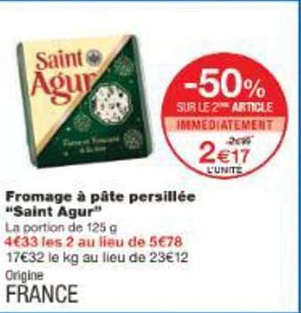 Découvrez la délicieuse offre sur le fromage à pâte persillée "Saint Agur" disponible chez Monoprix. Parfait pour apporter une touche crémeuse et savoureuse à vos plats, ce fromage est idéal pour les apéritifs, les salades ou même simplement sur une tranche de pain. Ne manquez pas cette occasion de savourer un produit typiquement français à un prix imbattable!