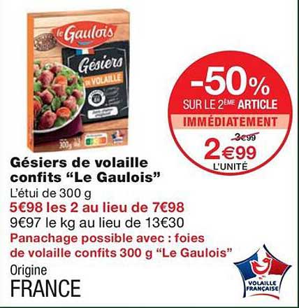 Offre de Gésiers De Volaille Confits “Le Gaulois” chez Monoprix