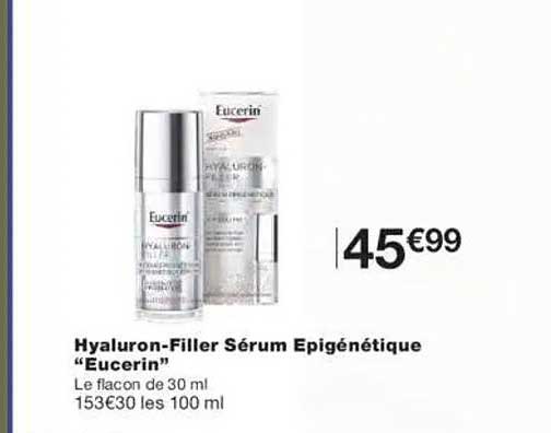 Vous recherchez une solution efficace pour hydrater et revitaliser votre peau ? Ne cherchez plus ! Le Sérum Epigénétique "Eucerin" est spécialement formulé pour combler les rides et améliorer l'élasticité de la peau. Profitez d'une hydratation intense grâce à sa formule riche en acide hyaluronique.
