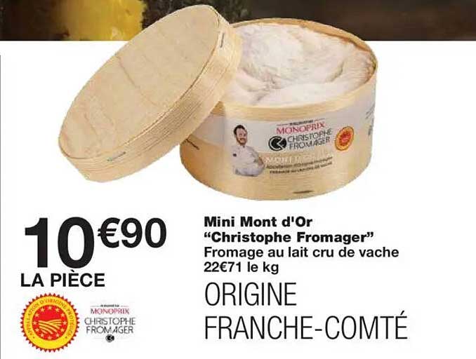 Découvrez dès maintenant la offre Mini Mont d'Or "Christophe Fromager" dans le catalogue de Monoprix. Cette offre est valable du 21/10/2025 au 02/11/2025.