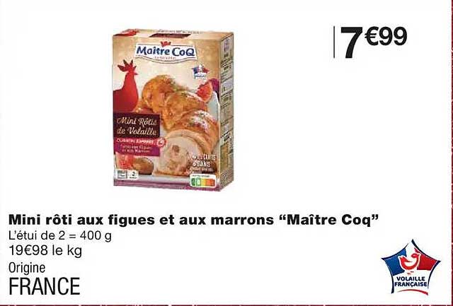 Découvrez dès maintenant la offre Mini rôti aux figues et aux marrons “Maître Coq” dans le catalogue de Monoprix. Cette offre est valable du 02/12/2025 au 14/12/2025.